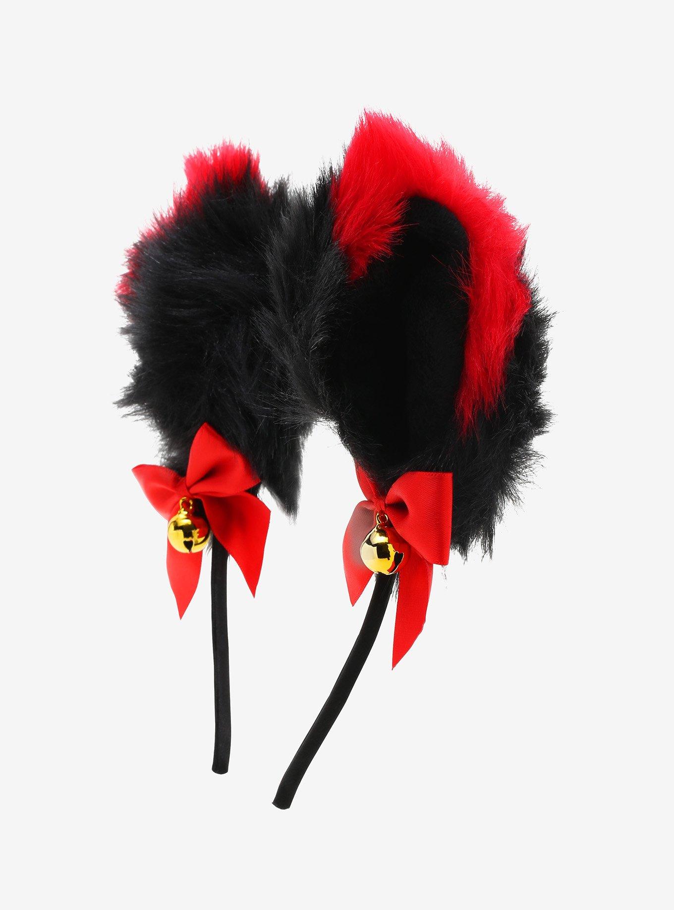 Black Red Ribbon Bell Fuzzy Cat Ear Headband Hot Topic